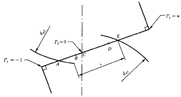 齧合線上的點用無量綱線性參數гy來表示,在齧合線與小輪基圓的切點處гy爲-1,在節點處гy爲0[33],見圖3。