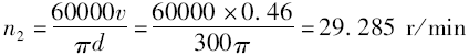 查表A1,選取MQ滿足不等式Mjmax≤MQ≤Mmax的型号,選取YZX132M242,其MQ=2903 N·m電機轉速n=915r/min,實際傳動比i′=30.94(表A2)。