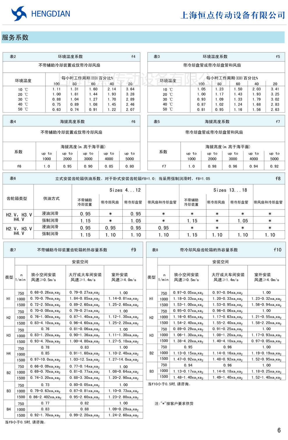 7 - 輸出軸允許的附加徑向力 8 - H系列傳動能力表