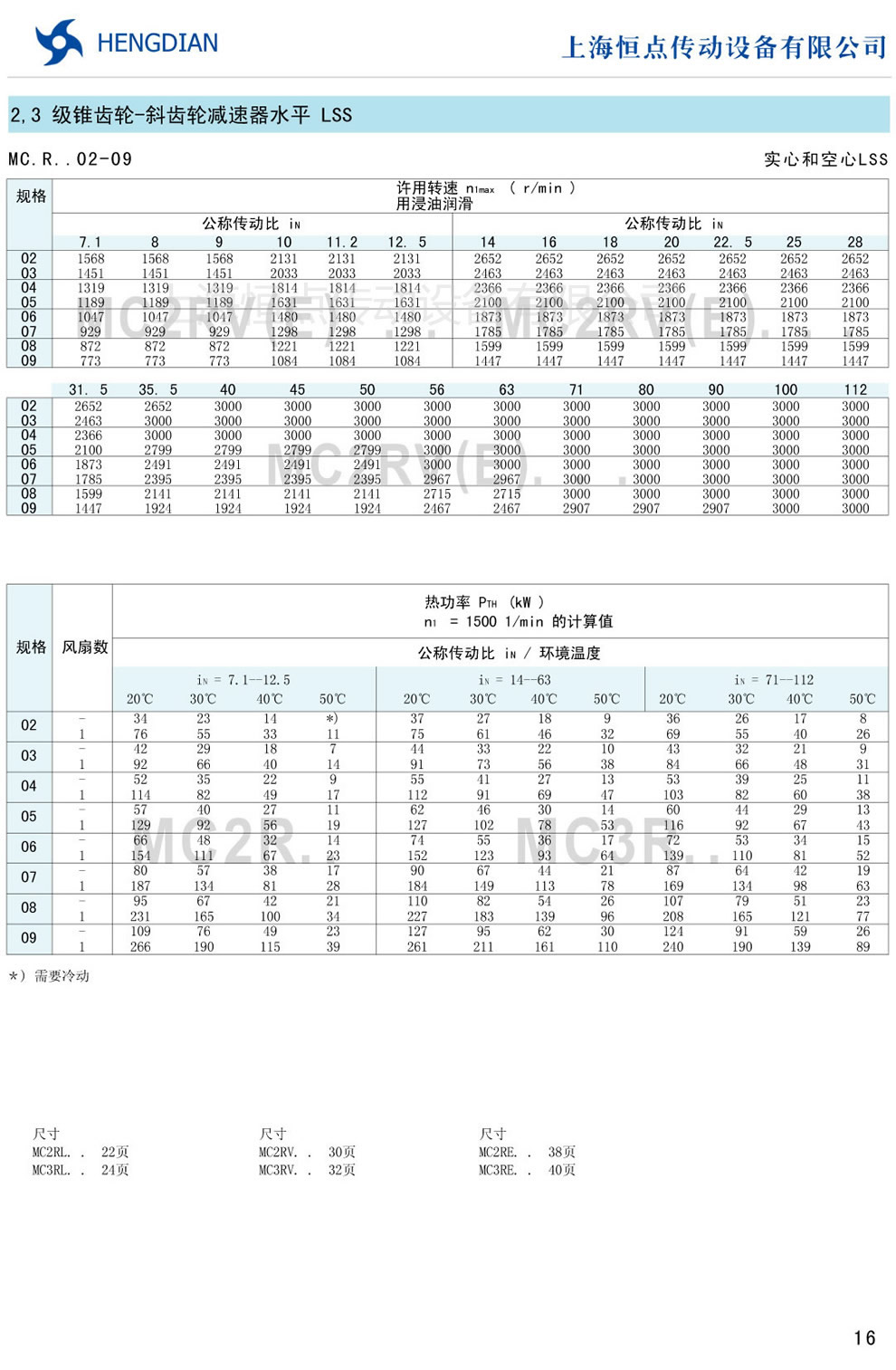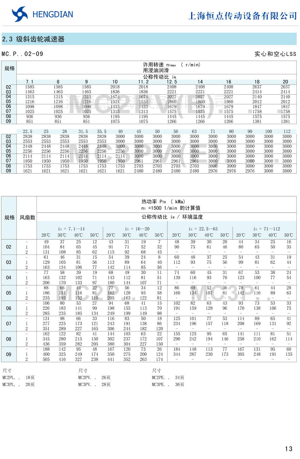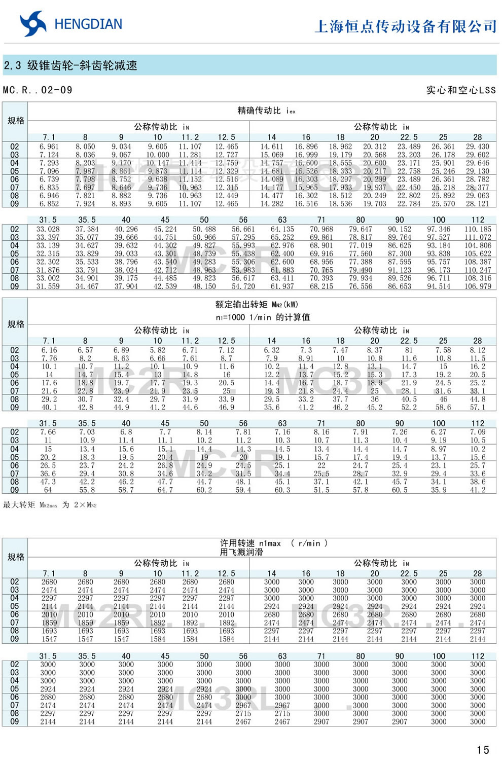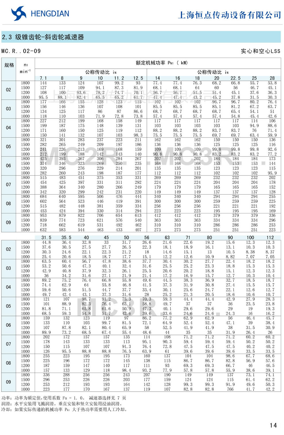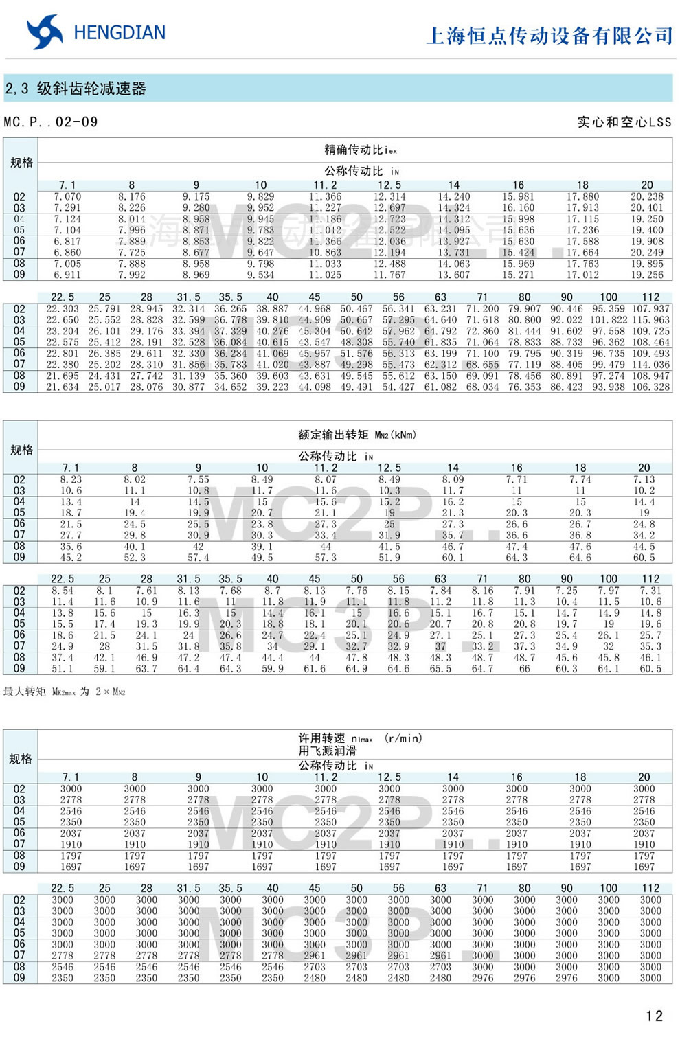 MC硬齒面減速器 詳細選型參數及尺寸參數: