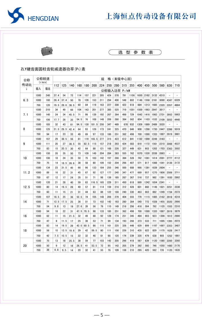 ZLY選型表 - Z系列硬齒面圓柱齒輪減速機