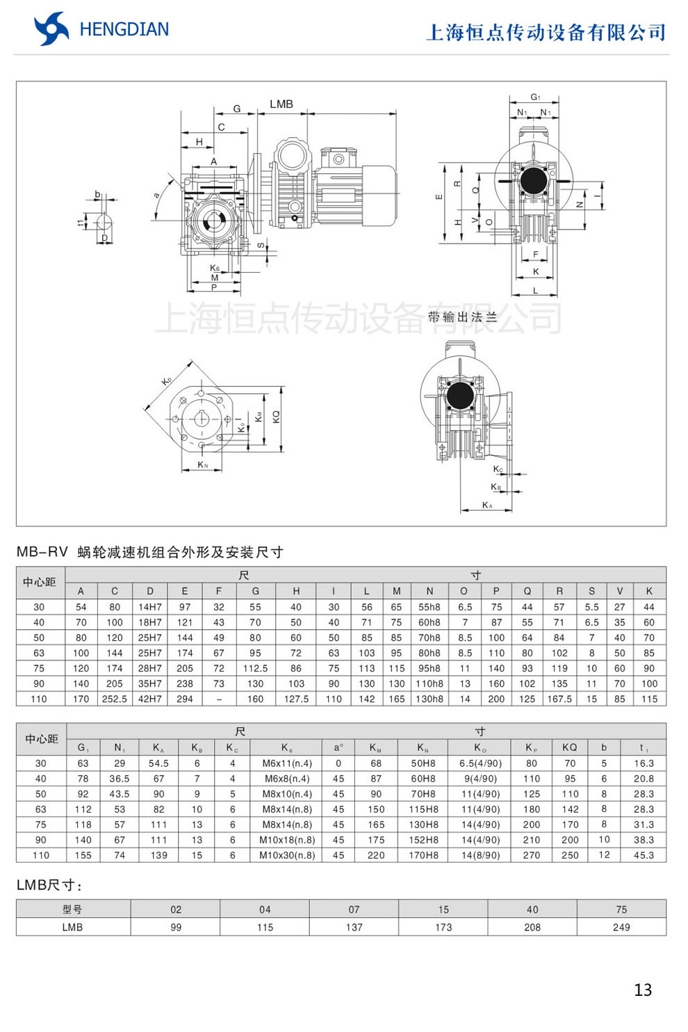 MB與RV系列減速機組合的性能參數及外形安裝尺寸 - MB無級變速機
